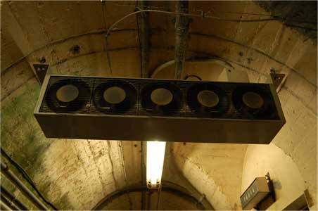 職員の方がさりげなく示された天井には豪快に回る換気扇。