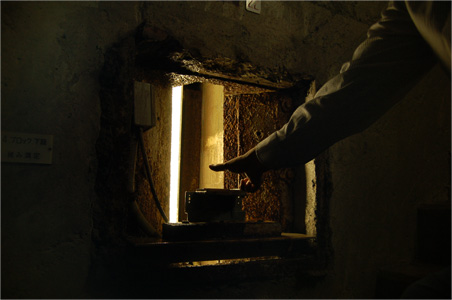 点検用の蛍光灯のスイッチを入れてもらったところ。