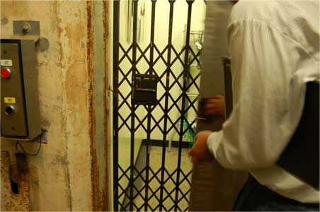 手動で扉をあけると中にはさらにレトロなシャッター。