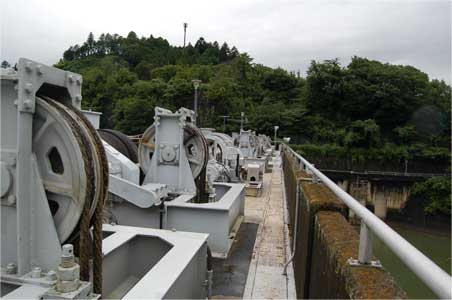 巻上機のワイヤーの隙間から扉体を見たところ♪