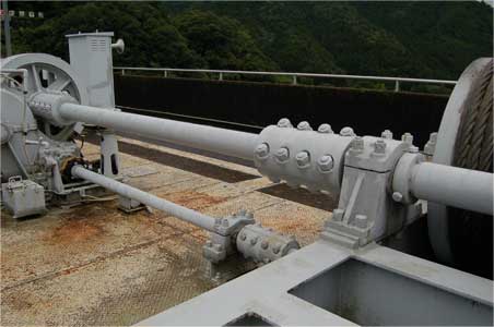 このように巻上機のあるゲートピアは天端の真上より下流側にずれています。
