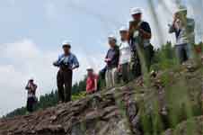 洪水吐水路の横の地山にがさごそ降りて行って草葉の陰から