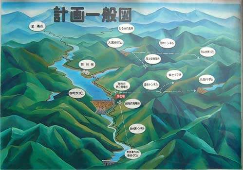 御母衣ダムと仲間たちの図。