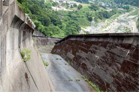 とにかく他のロックフィルダムの洪水吐と傾斜が違うのです。