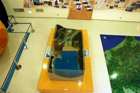 と、館内展示物で御母衣ダムの構造がわかるパネルの前に移動。
