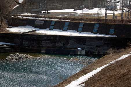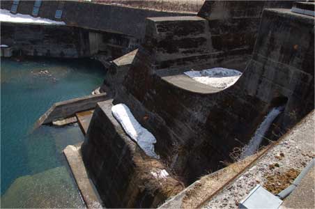 この写真ではちっとも見えませんが、第一洪水吐も水がジャンプするように