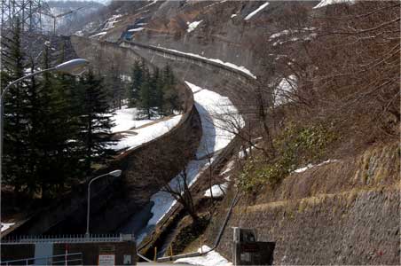 減勢池中央に飛ばすように思いっきりカーブが付けられているあたりがたまりません。