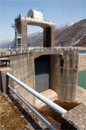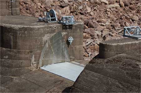 そして水位が低いので下まで見られた第一洪水吐ゲート。