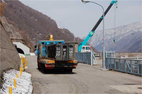 トラックが入ってきたので見ていたらなんと荷台にあるのは角落とし!