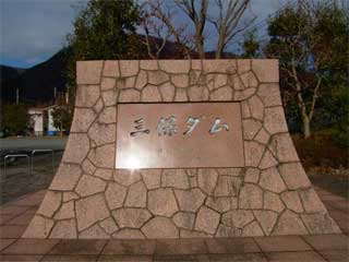 地面にはカラーコンクリートブロックで『三保ダム』と書いてあります。