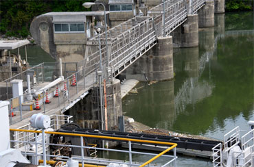 でも右岸からと違ってローラーゲートの上流面がチラ見え。