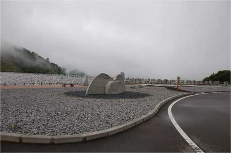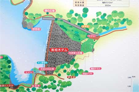 天端右岸の天空の石広場から下流のウズマク広場まで。