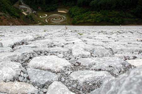 下流で洪水吐の横でトンネルから勢いよく出ていた水は