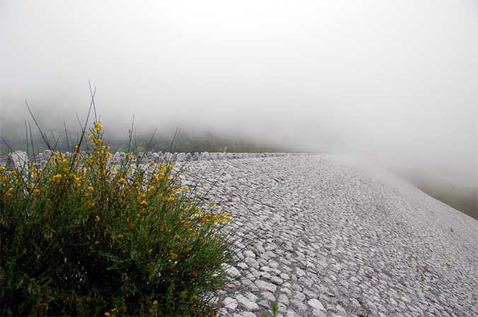 右岸から帰る時にはもうガスの海を歩くような状態に。
