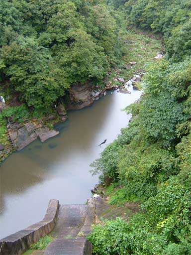 下流側はコンクリートで河床を固めてある様子がうっすらとみえています。