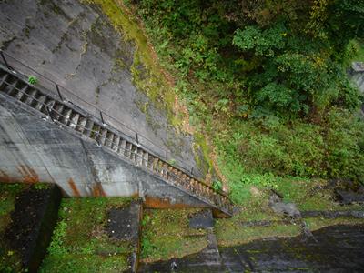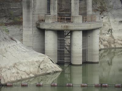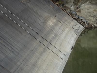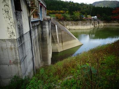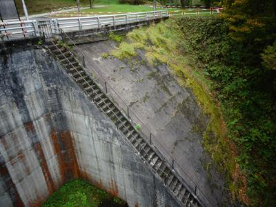 まずは貯水池の左岸側をずずっと横に移動して洪水吐を愛でます。