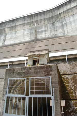 監査廊の入口にはコンクリートとブロックで造られた神棚がありました。