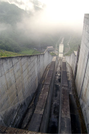 真ん中は常用洪水吐からの水が通る水路となっています。