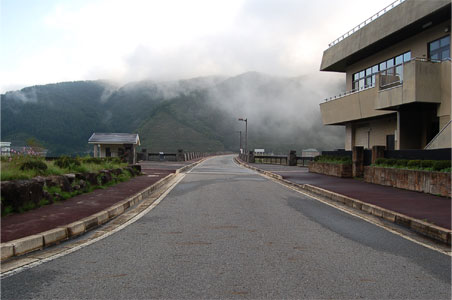堤体はガスの向こうに霞んでいます。
