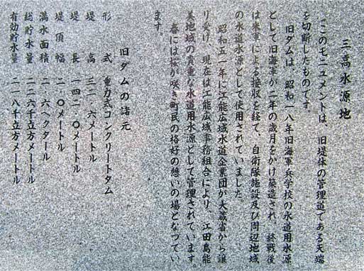 『旧ダムは昭和18年旧海軍兵学校の水道用水源として旧海軍が二年の歳月をかけて築造』とあります。