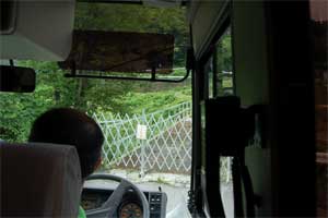 トンネルの手前でバスが駐車。