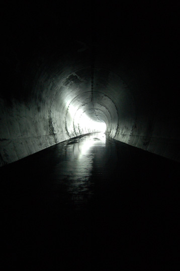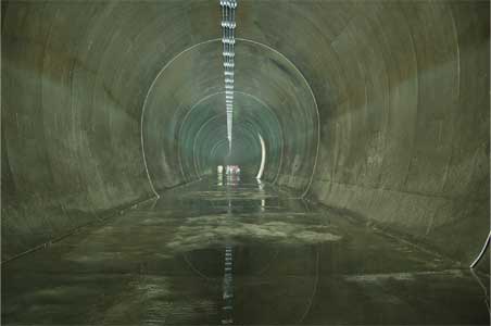 排砂バイパストンネルは勾配が1/100とのことで緩やかに出口に向かって
