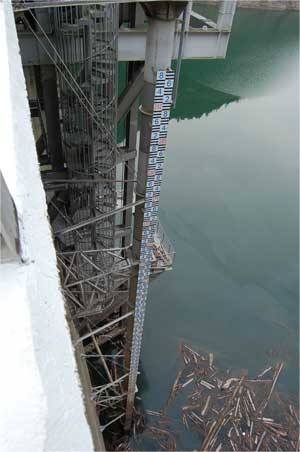 今は水位が低いので水位標もばっちり見えています。