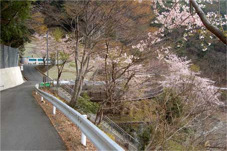 そして左岸を下っていくと、桜と小綺麗に整備されたスペースが。