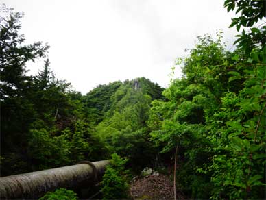 最初の山を登り切り、水圧鉄管のサドルの横に出てきました。