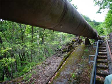 水圧鉄管の横の点検路の階段が気になります。