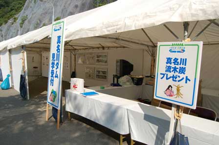 皆さんまず真名川ダム堤体見学の申し込みとカブトムシや炭の無料配布に駆けつけます。