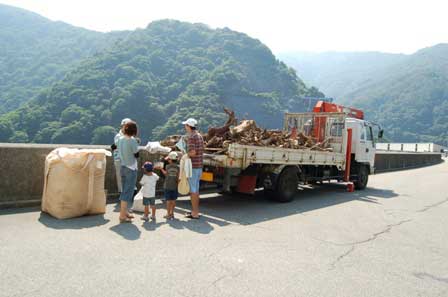 ダム愛好家ブースの前では流木無料配布とおが粉の無料配布。