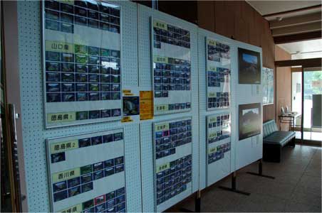 管理所1階の玄関ホールにどーんと展示された写真展のパネル展示ボード。