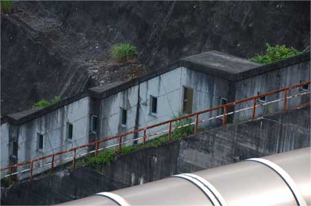 堤体直下の電源開発・長野電力所の皆様も発電所見学で頑張られます。