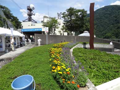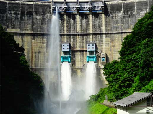 見学コースで一番堤体に近い場所まで来るとコンジットゲートの放流の水飛沫なのか