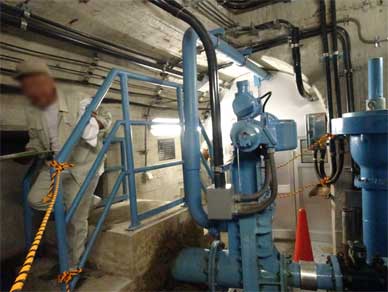 背の高い人には辛いこのパイプをまたぐ階段構造。