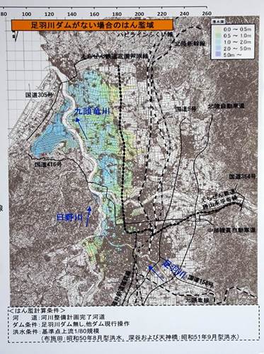 足羽川にはダムがないのでこんなに浸水被害が想定されているのです。