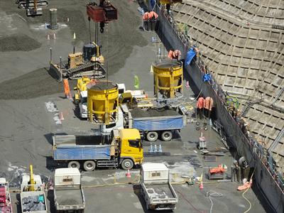 発熱を抑えるためにホントにこれコンクリートなの?という材料を使いますが