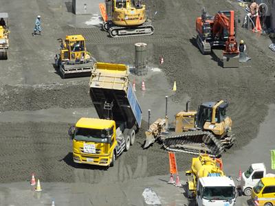 特別重機、建機ではなく、通常重機、建機が走り回っています。