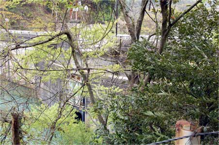 西の沢筋に至る道路はこのように綺麗に護岸されたダム湖の縁の上に造られています。