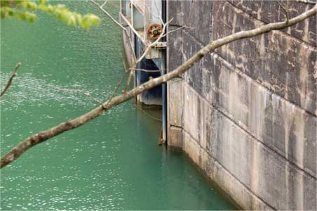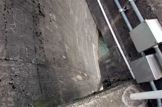 そんなに高くないので堤体直下の減勢池の水面まで見えています。