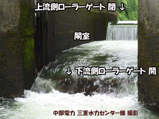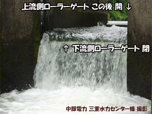 そして下流扉が決まった時間にするすると上がり始めると上流扉との落差が無くなります。