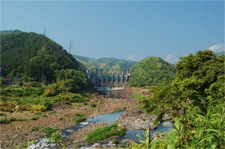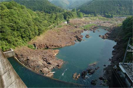 谷をふさぐ重厚な堤体。