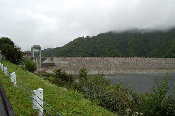 ダム湖上流から堤体を見たところです。