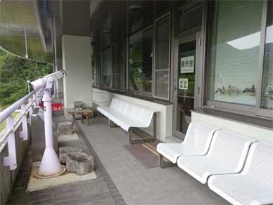 管理所の展示室のベランダには望遠鏡もあるしベンチもある充実っぷり。