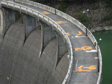 「なるこダム」の文字が書きたてほやほやですごく目立つ…。
