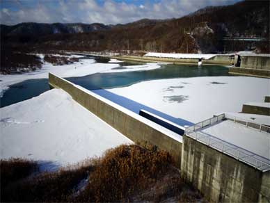 二風谷ダムの貯水池は総貯水容量3150万m3。