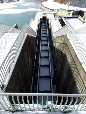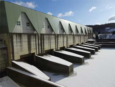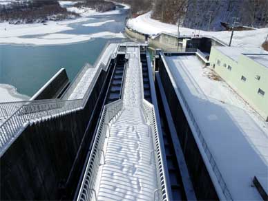二風谷ダムのスイングシュート式魚道。