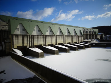 日本一のローラーゲートを並べている天竜川の船明ダム天端で感じる
