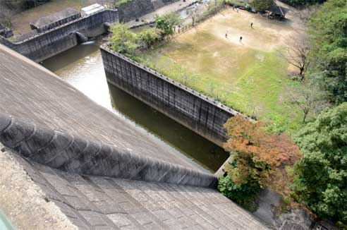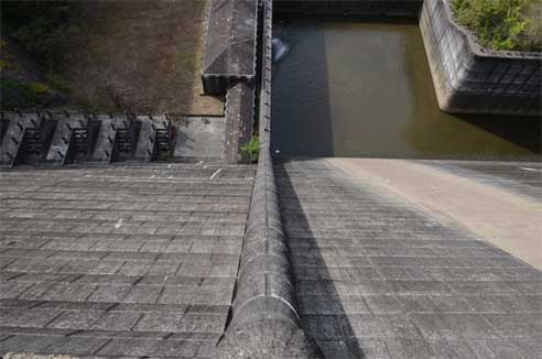 そして新堤体からは旧堤体の真向きがこんな風に見られるのです。